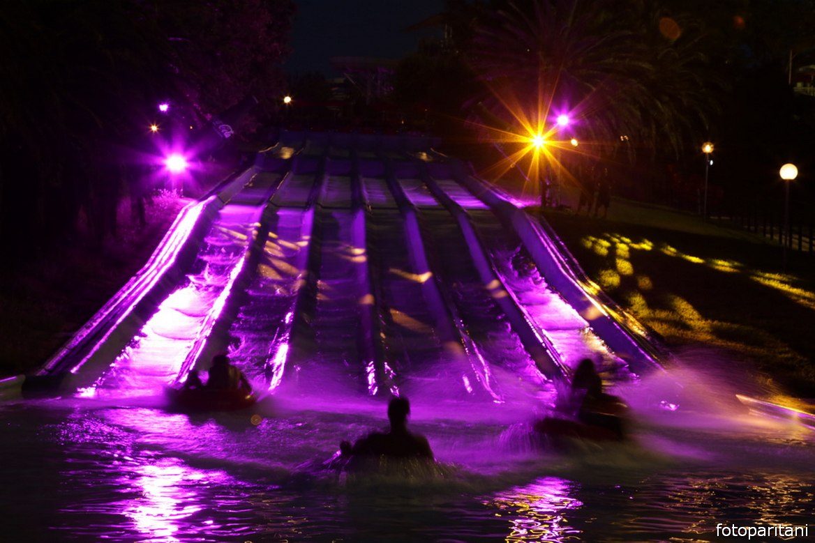 Parco aperto dalle 10 fino alle 23:30 con scivoli attivi fino alle 23.
