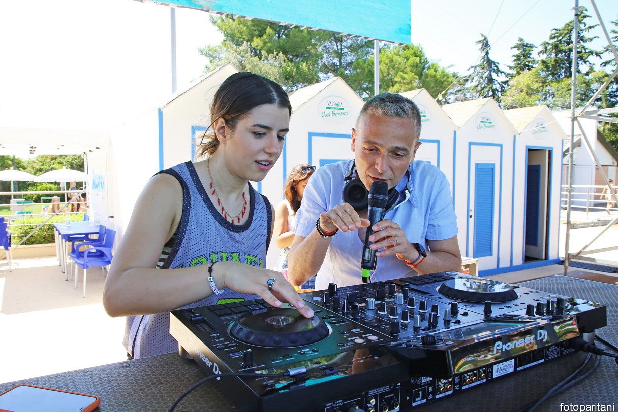 In compagnia del suo chitarrista Domenico Cambareri, ha presentato 4 brani in acustico e poi il suo successo 'Bella così', circondata dagli Aquadancers. E si è anche fermata al dj set di Franky subito dopo il live.